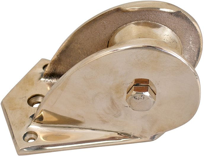 Kräftige Grundplatte: Der Beschlag wird aufs Deck oder auf den Stevenkopf aufgesetzt.