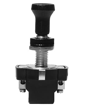 Zugschalter aus schwarzem Kunststoff mit Schraubanschlüssen.