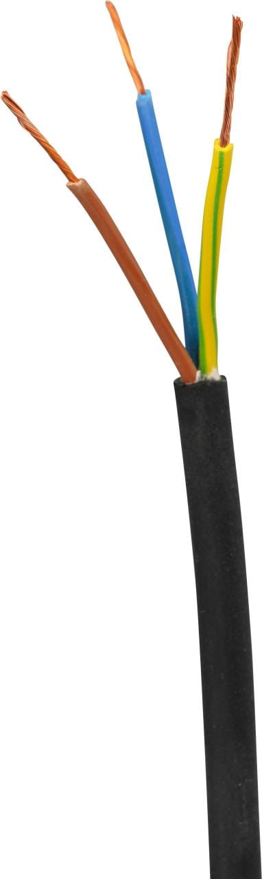 Dreiadriges Kabel mit freindrähtigen Kupferleitern mit Gummimantel. Die Adern sind verseilt und ebenfalls mit Gummi isoliert. Gut geeignet für den Anschschluss von Elektrogeräten wie z. B. Lötkolben, Bohrmaschinen, Küchengeräte, Staubsauger, etc.