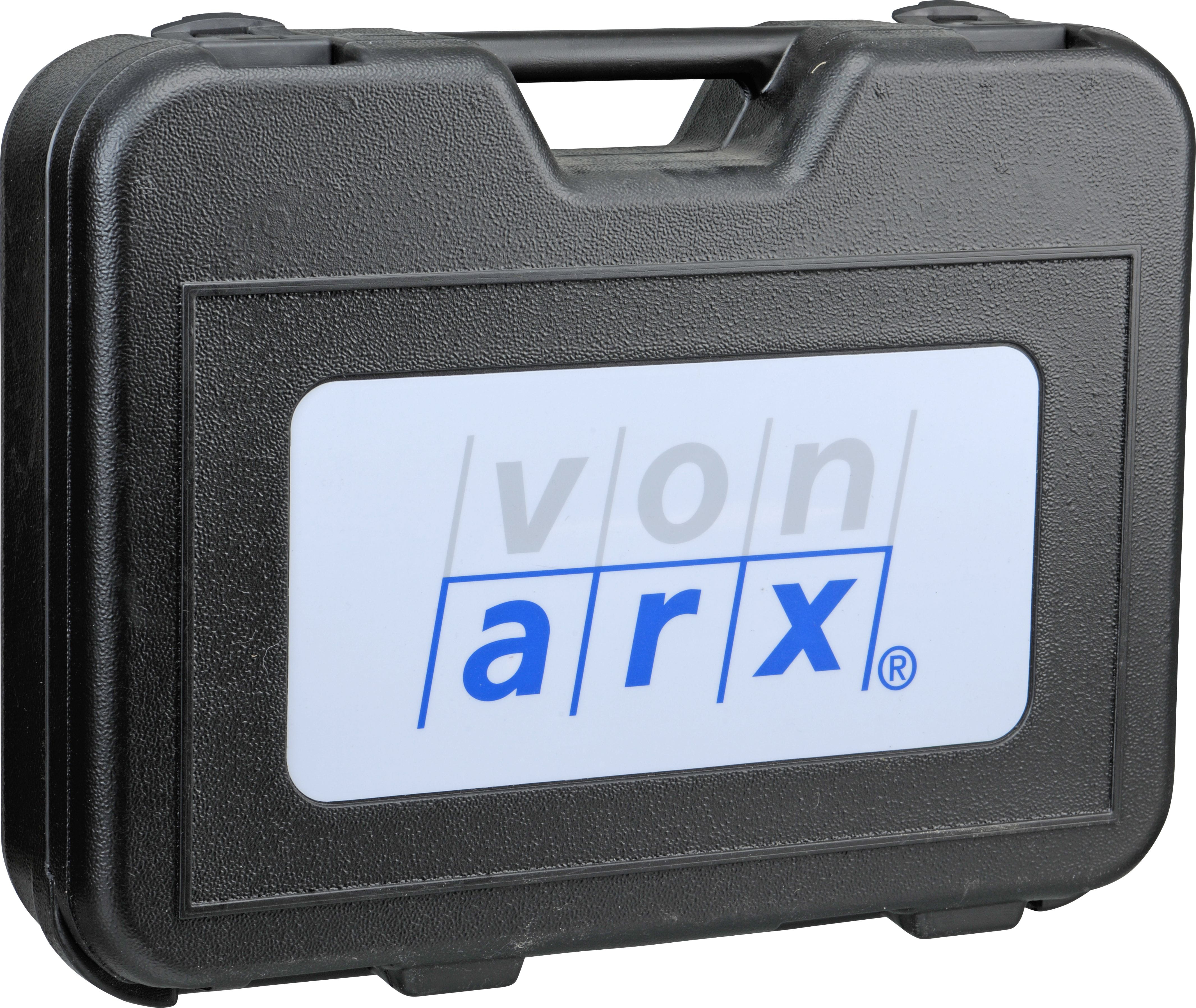 Lieferung inklusive einem schwarzen Kunststoffkoffer.