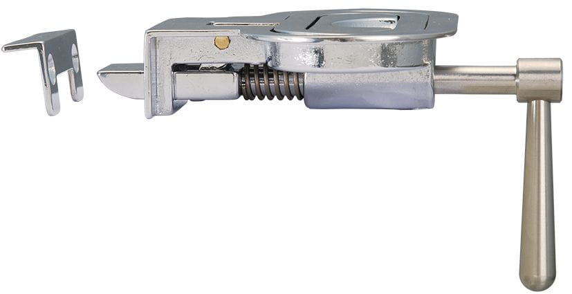 Ein kräftig dimensionierter Edelstahl-Riegel ermöglicht auch das Öffnen von innen.