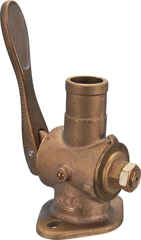 Hochwertiges Seeventil mit konischem Verschlussstopfen, auch bezeichnet als Konus-Seeventil. Mit bordseitigem Schlauchanschluss.