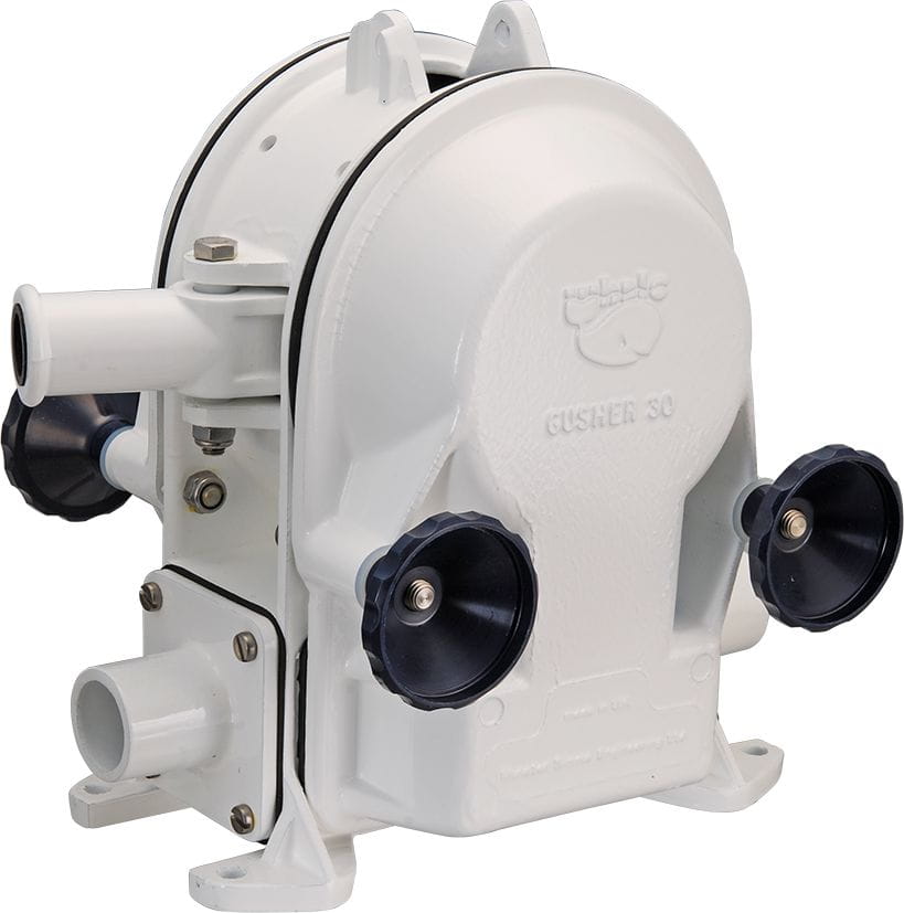 Die GUSHER 30 ist größte manuelle Lenzpumpe von WHALE, die maximale Förderleistung beträgt 117 Liter pro Minute (bei 70 Schlägen). Das Gehäuse dieser jahrzehntelang bewährten und langlebigen Doppelmembranpumpe besteht aus einer pulverbeschichteten Aluminium-Druckgusslegierung.