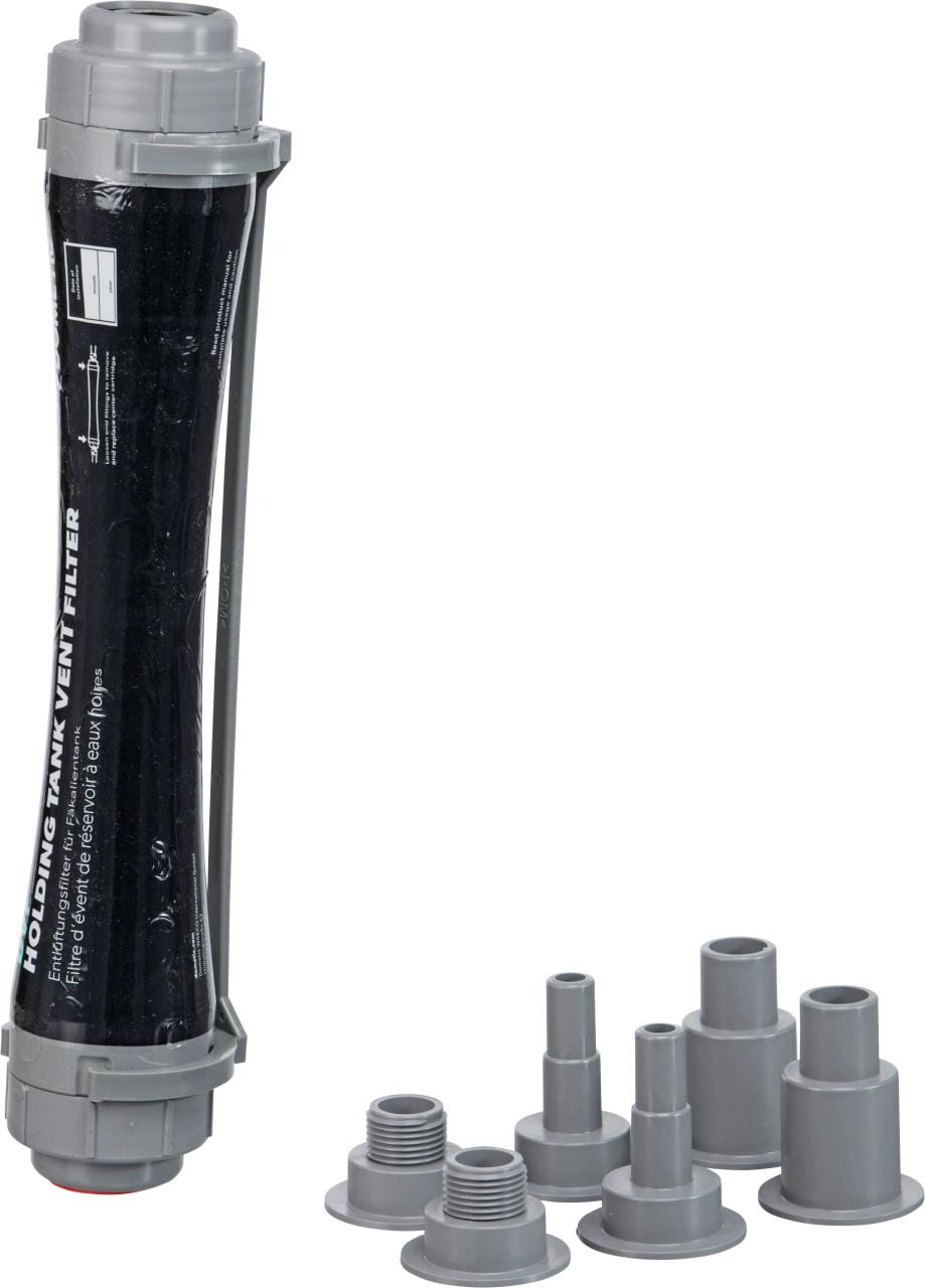 Von DOMETIC neu entwickelter Geruchsfilter, der in die Entlüftungsleitung des Fäkalientanks eingebaut wird. Der Filter enthält Aktivkohle und bindet unangenehme Gerüche aus dem Abwassertank, er sorgt für saubere, angenehme Luft für eine ganze Saison.