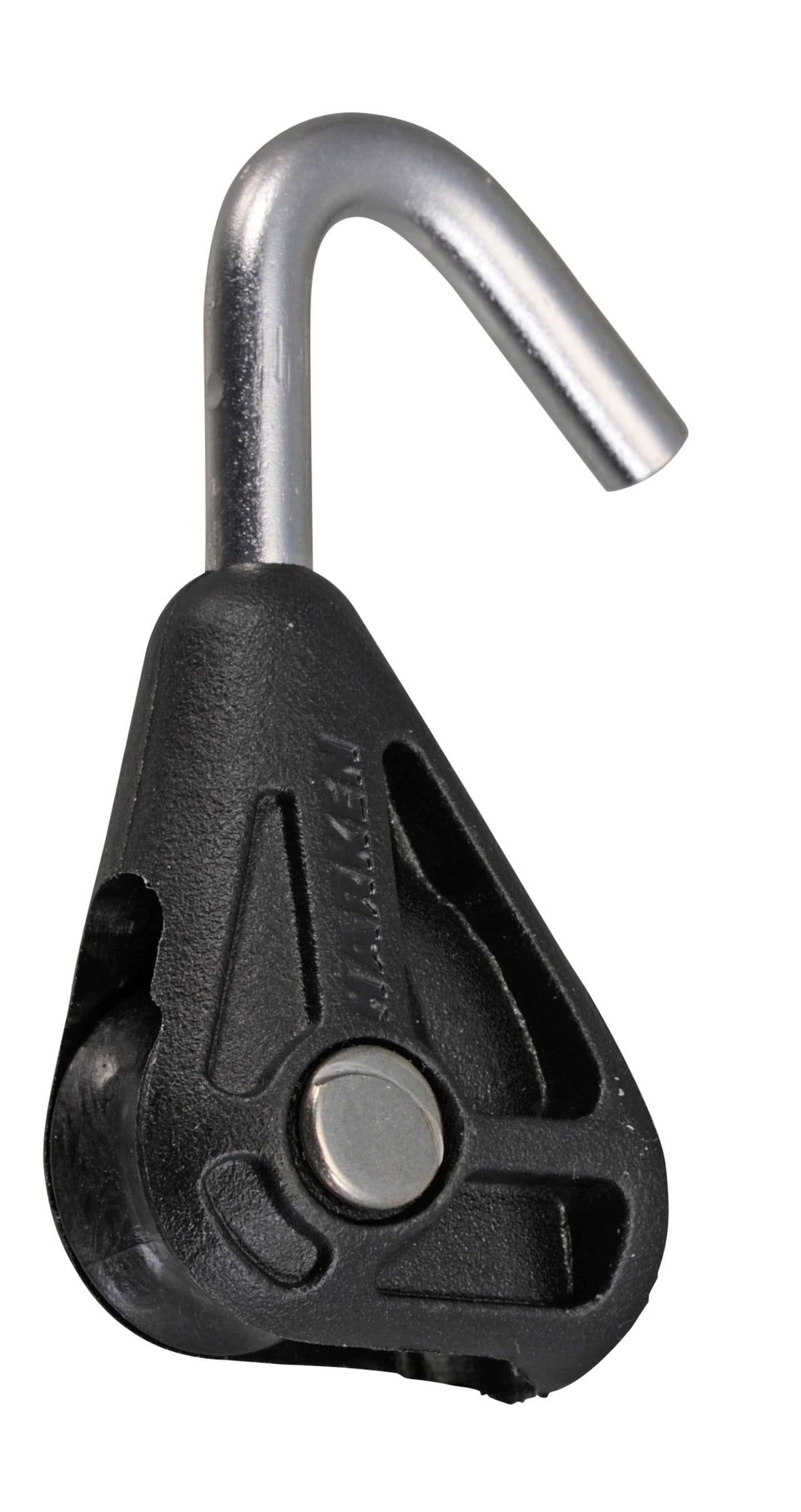 Das Rollengehäuse wurde aus Nylon gefertigt, der Haken und die Scheibe aus Edelstahl.