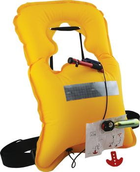 Einfache aufblasbare Rettungsweste der 100N-Klasse gemäß ISO 12402-4 und 12402-6.