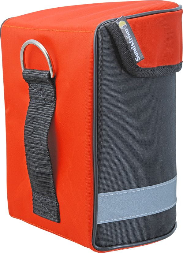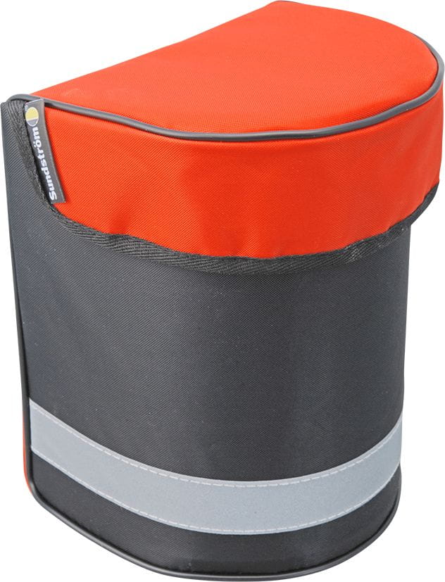 Farbe: schwarz mit organgem Deckel und Reflektorband.