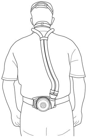 Rückenhalter-Filtersystem zum Anschließen an die Atemschutzmaske SUNDSTRÖM SR 900. Mit Hilfe eines Doppelschlauches wird die Schutzmaske für höchsten Komfort bei der Arbeit oder beim Tragen von Visieren mit dem Rückenhalter-Filtersystem verbunden. Die Filter sind somit weit entfernt vom Gesicht und dem direkten Arbeitsbereich angebracht und damit länger einsatzfähig.