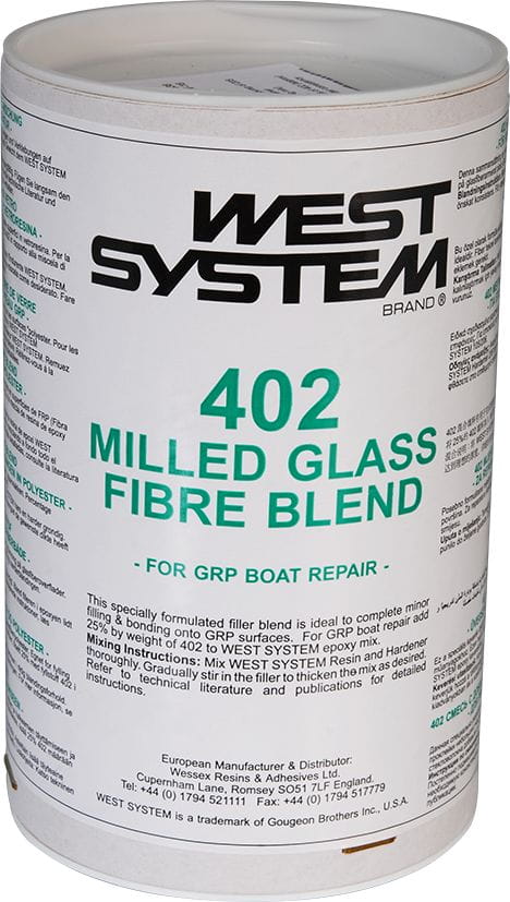 Farbe: creme. Wird der Füller dem WEST SYSTEM Epoxy in einem Verhältnis von 25% nach Gewicht beigemischt, ergibt sich eine dicke Paste, die sorgfältig mit einem Pinsel in die Reparaturstelle getupft wird.