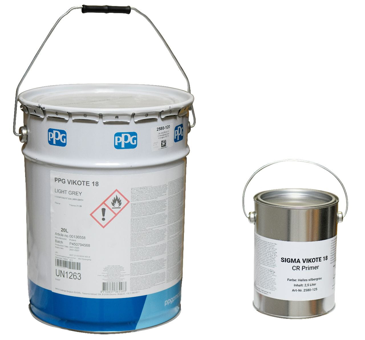 Ein in der Schifffahrt bewährter und gut rostschützender Unterwasserprimer. Diese mit Aluminium pigmentierte Chlorkautschuk-Grundierung ist von hoher Wasserdichtigkeit und Elastizität. Sie eignet sich für Stahl, Holz und GFK und kann mit den meisten handelsüblichen Antifoulings überstrichen werden. PPG SIGMA VIKOTE 18 eignet sich auch als Sealer zwischen einem alten und einen neuen Antifouling-Anstrich.