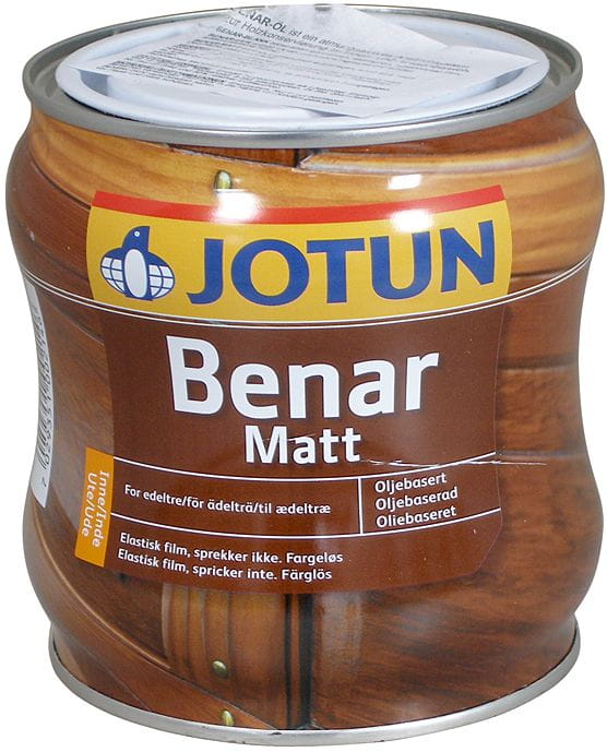 BENAR MATT ist ein klares Holzöl auf Basis langöligen Alkydharzes zur Erziehlung eines matten Finish als Schlussanstrich auf andere BENAR-Produkte wie BENAR Glänzend (Art.Nr.2091-003). Das Produkt bildet einen matten, atmungsaktiven Schutzfilm mit guter Wasserdampfdurchlässigkeit und eignet sich für die Anwendung von wenig UV-belasteten Oberflächen im Innen- und Außenbereich.