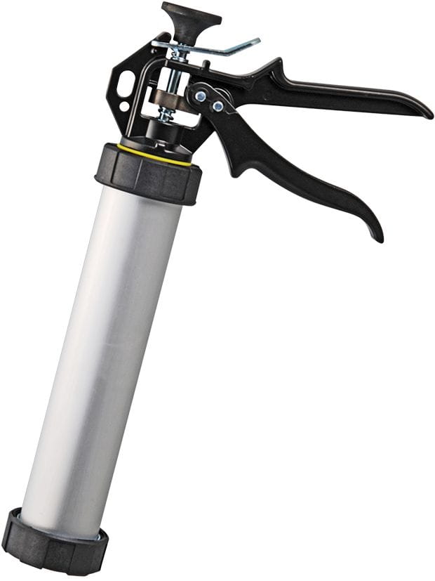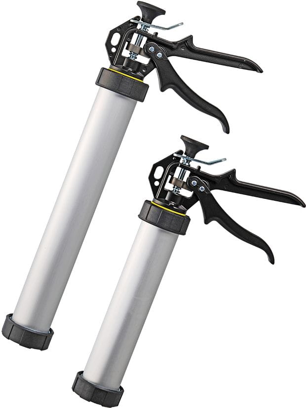 Die geschlossenen PROFI-Modelle mit Aluminium-Rohr, stabiler Metall-Mechanik und kräftigen Griffen aus lackiertem Aluminium sind sowohl für Kartuschen als auch für Beutel geeignet.