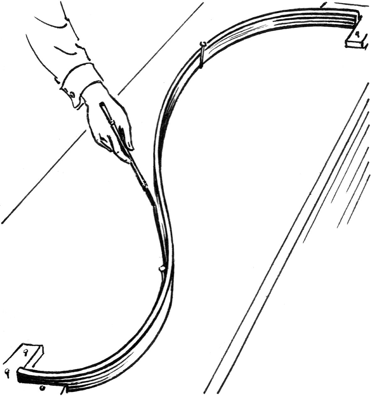 Kräftige Straklatte für Segelmacherloft und Schnürboden.