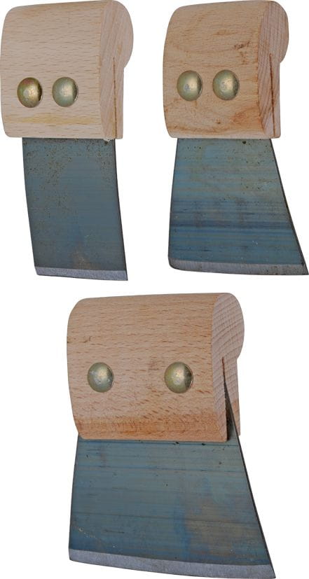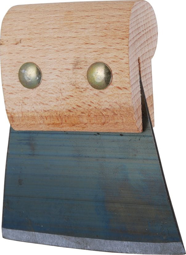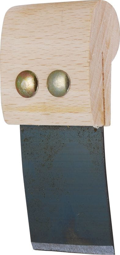 Ziehlklinge mit unlackiertem Holzgriff. Die Klinge aus gehärtetem Werkzeugstahl ist fest eingenietet, und sorgfältig, leicht gekrümmt angeschliffen.