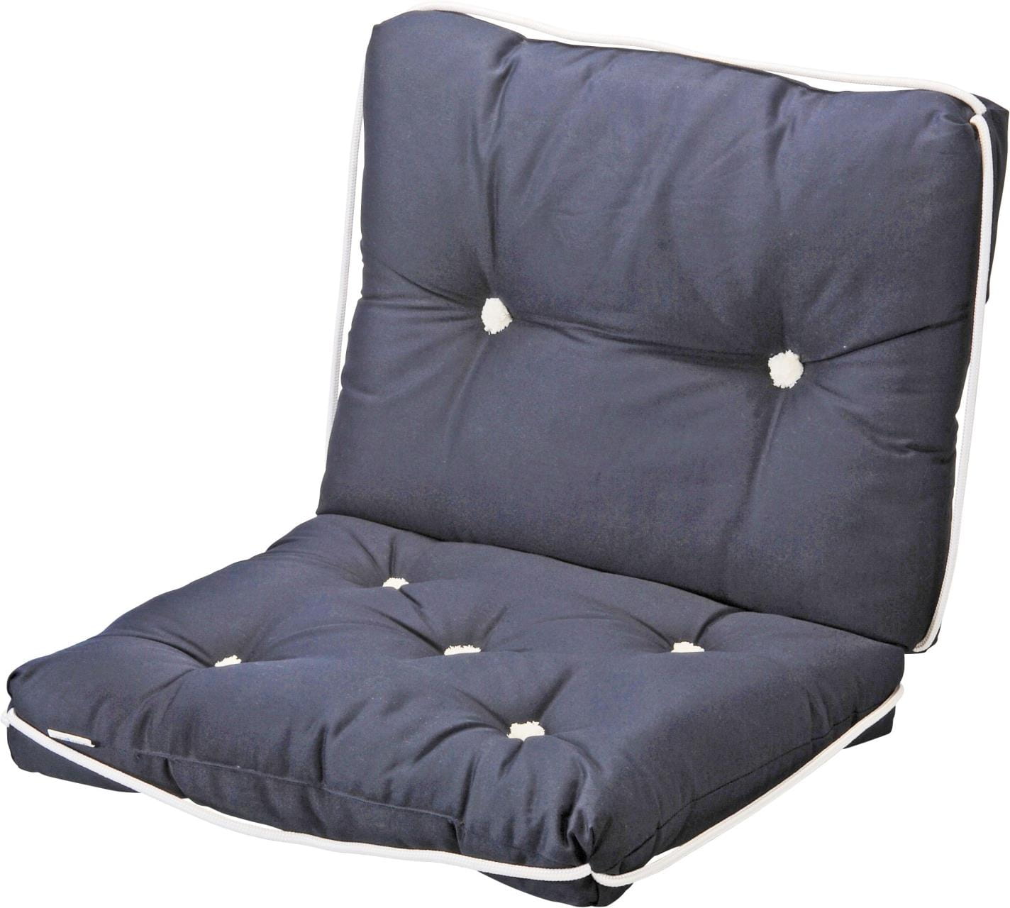 Die Sitzkissen besitzen eine Füllung aus Kapok, der Blütenfaser einer Distelpflanze. Dieses natürliche Material ist atmungsaktiv, wasserabweisend, filzt und klumpt nicht und bleibt jahrelang elastisch. Die Kissen haben einen Bezug aus Baumwollgewebe und eine umlaufende Leine. Erhältlich als Einzel- oder Doppelkissen.
