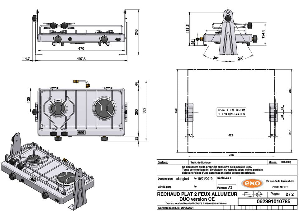 4721-004 ENO XTREM 2 (DUO) Gaskocher 2-flammig mit Kardanik und Batteriezündung