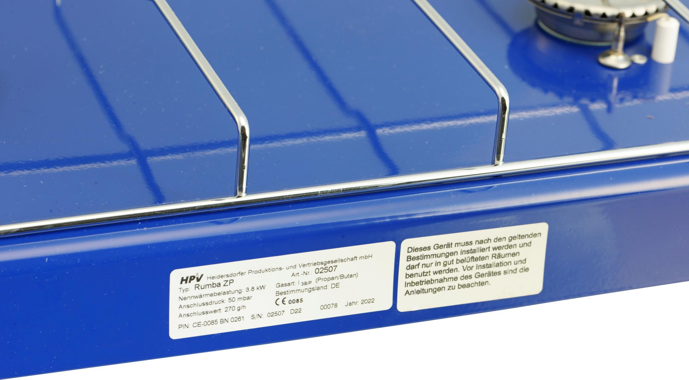 Die Leistung der Brenner ist über Drehregler stufenlos einstellbar. Ein abnehmbarer Deckel schützt die Brenner bei Nichtgebrauch und vereinfacht die Lagerung.