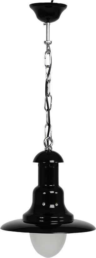 Aufhängung mit verchromter Messingkette (L 50 cm) mit schwarzer Deckenglocke (D 100 mm).