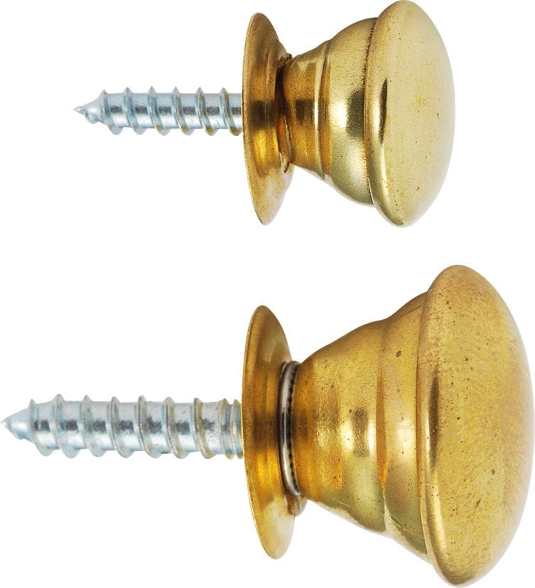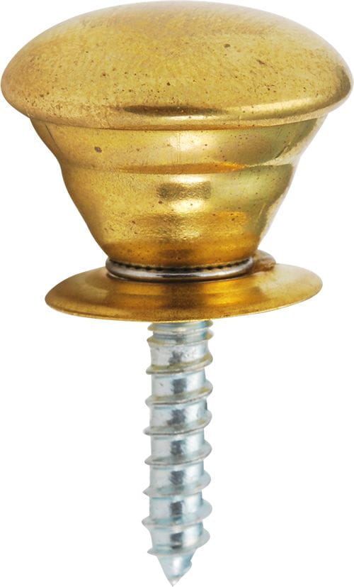 Gewölbter Schubladenknauf für kleine Schubladen oder Schranktüren. Poliertes Messing mit loser Grundplatte und Stiftschraube aus Stahl.