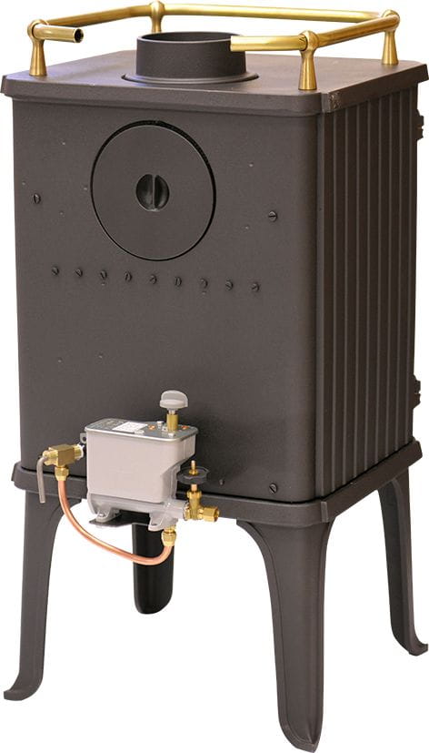 Diesen schönen Gusseisenofen Typ 1010 der dänischen Ofengiesserei MORSOE modifiziert REFLEKS mit seinem bewährten Schalenbrenner und dem TOBY-Ölregler zum Schiffsofen, der mit Dieselöl betrieben wird.