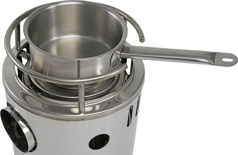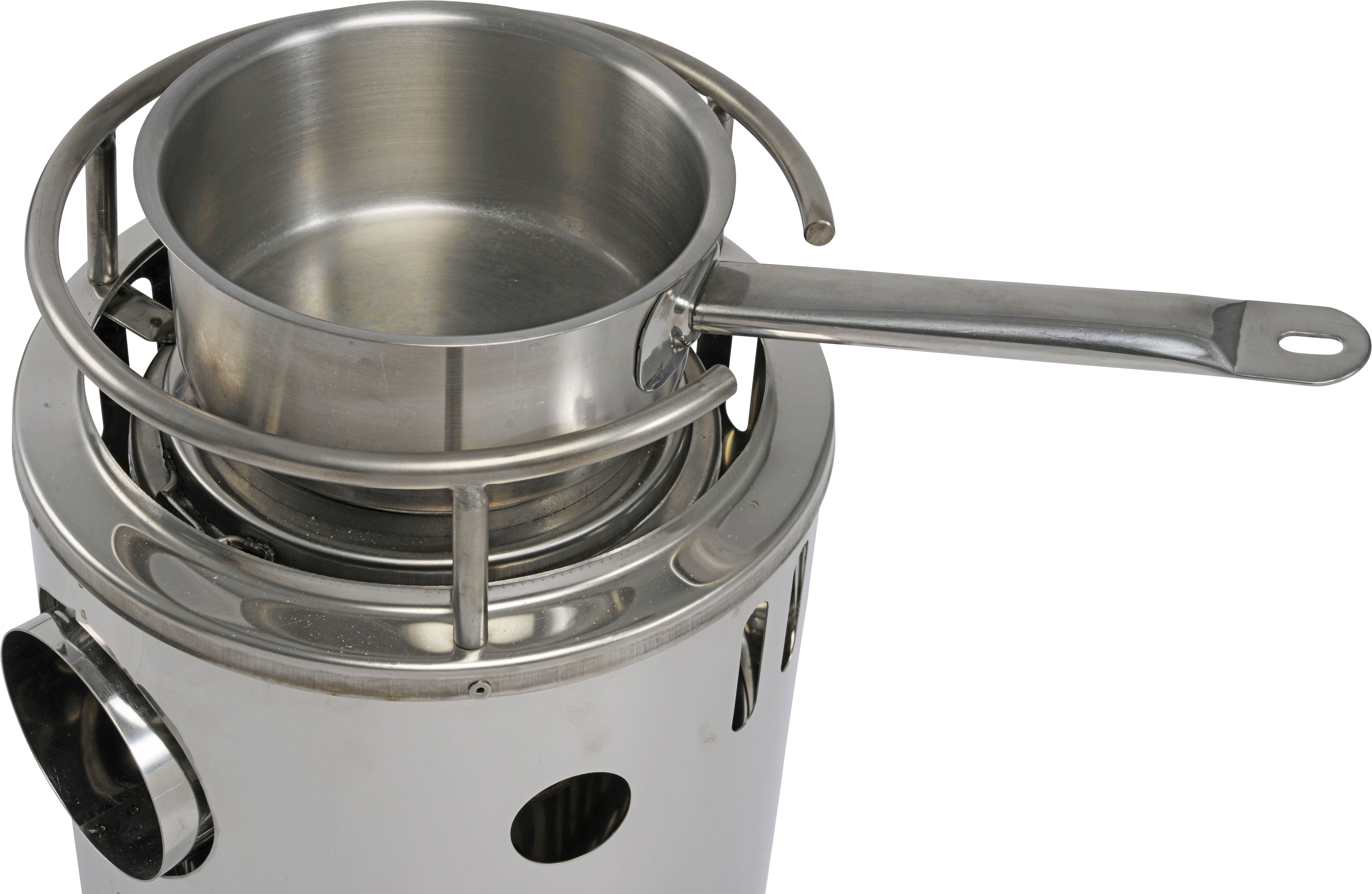 Der Ofen ist ausgestattet mit einem von REFLEKS entwickeltem Kessel aus Edelstahlblech (1,5 mm Wandstärke) zum Anschluss von Heizkörpern oder Warmwasserboiler.