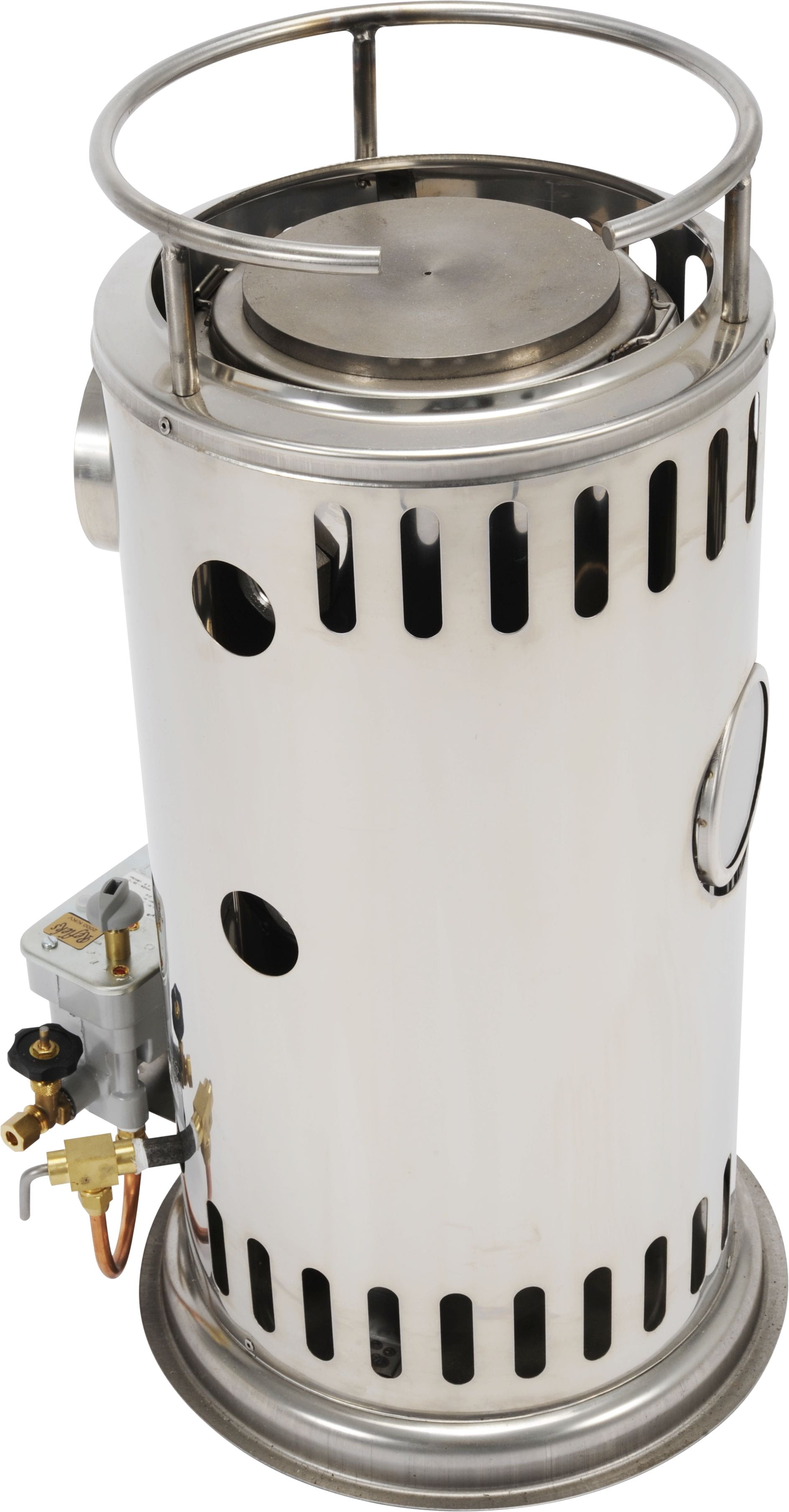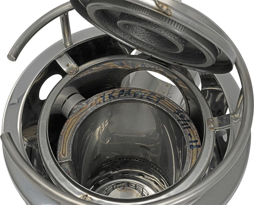 Eine spezielle Ausführung für die Aufstellung in Räumen mit problematischen Zuluftverhältnissen (z. B. Steuerstände, Camping-Fahrzeuge). Deshalb ist der Brennraum so gekapselt, das die Frischluft ausschließlich über das untere Rohr erfolgen kann ohne das die Raumluft verbraucht wird. Im Lieferumfang befindet sich ein Edelstahl-Einlassrohr mit Befestigungslaschen, dass fest in den Boden eingebaut werden kann. Der Ofen bleibt demontierbar.