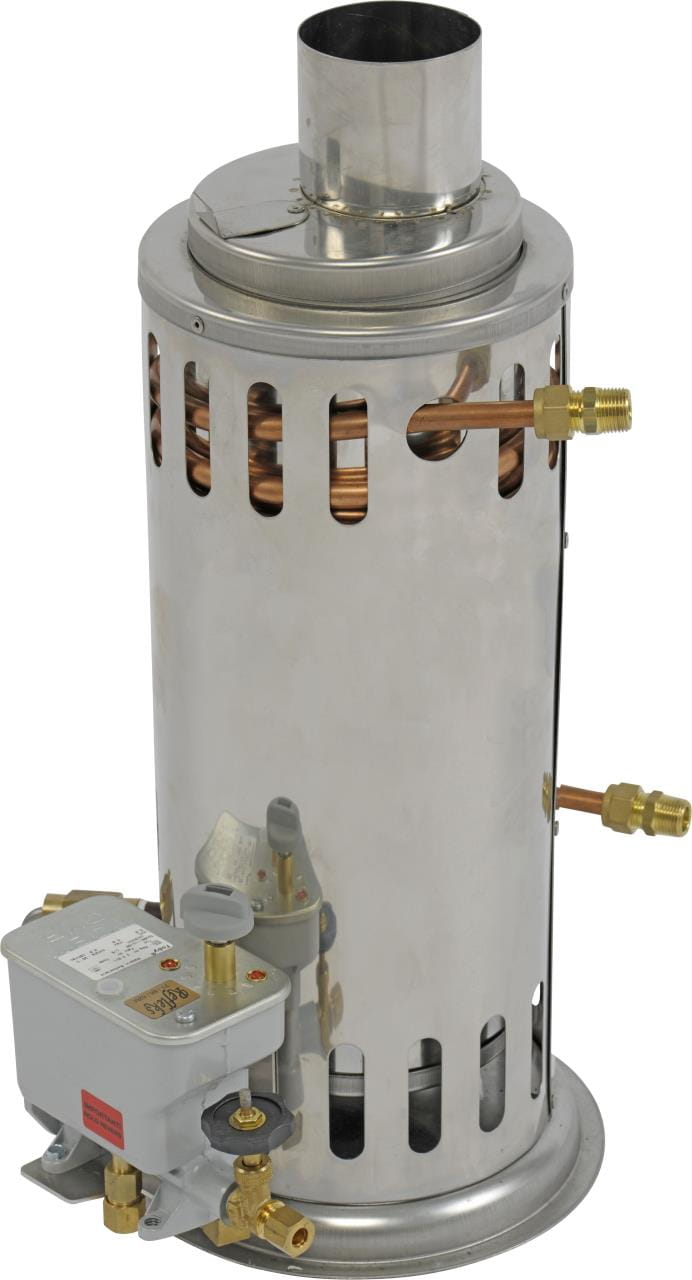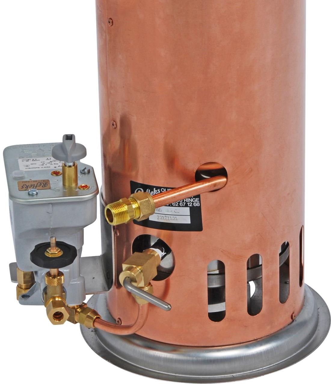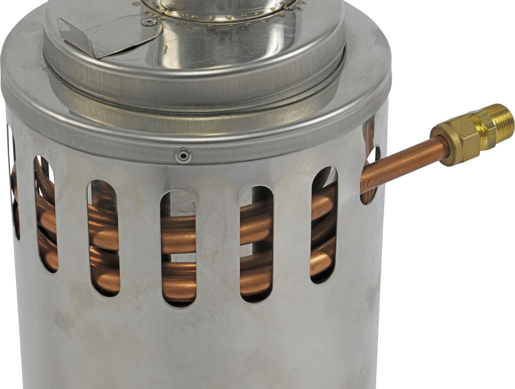 Ausgerüstet mit zusätzlicher Heizschlange aus Kupferrohr, zum Betrieb eines externen Heizkörpers.
