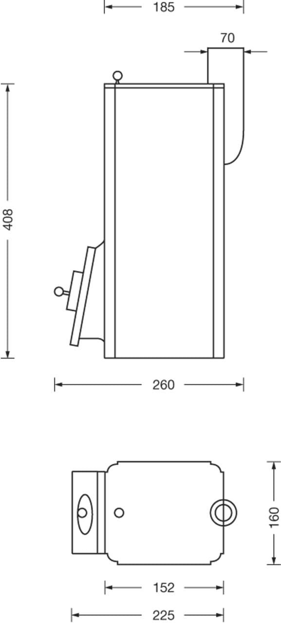 - Abmessungen H x B x T: 408 x 160 x 260 mm,