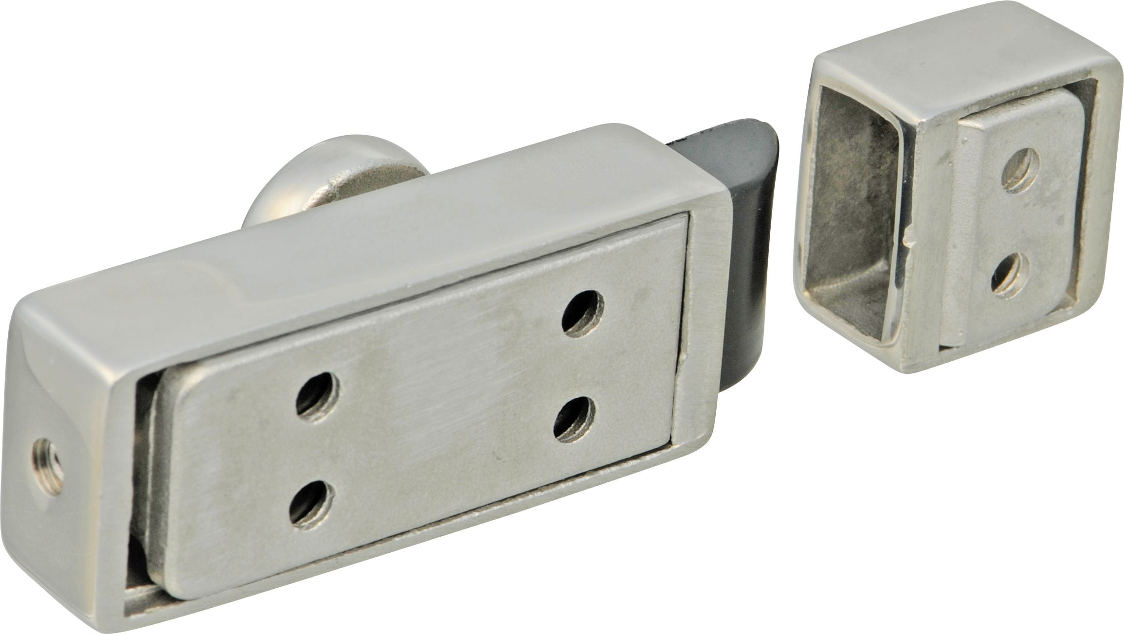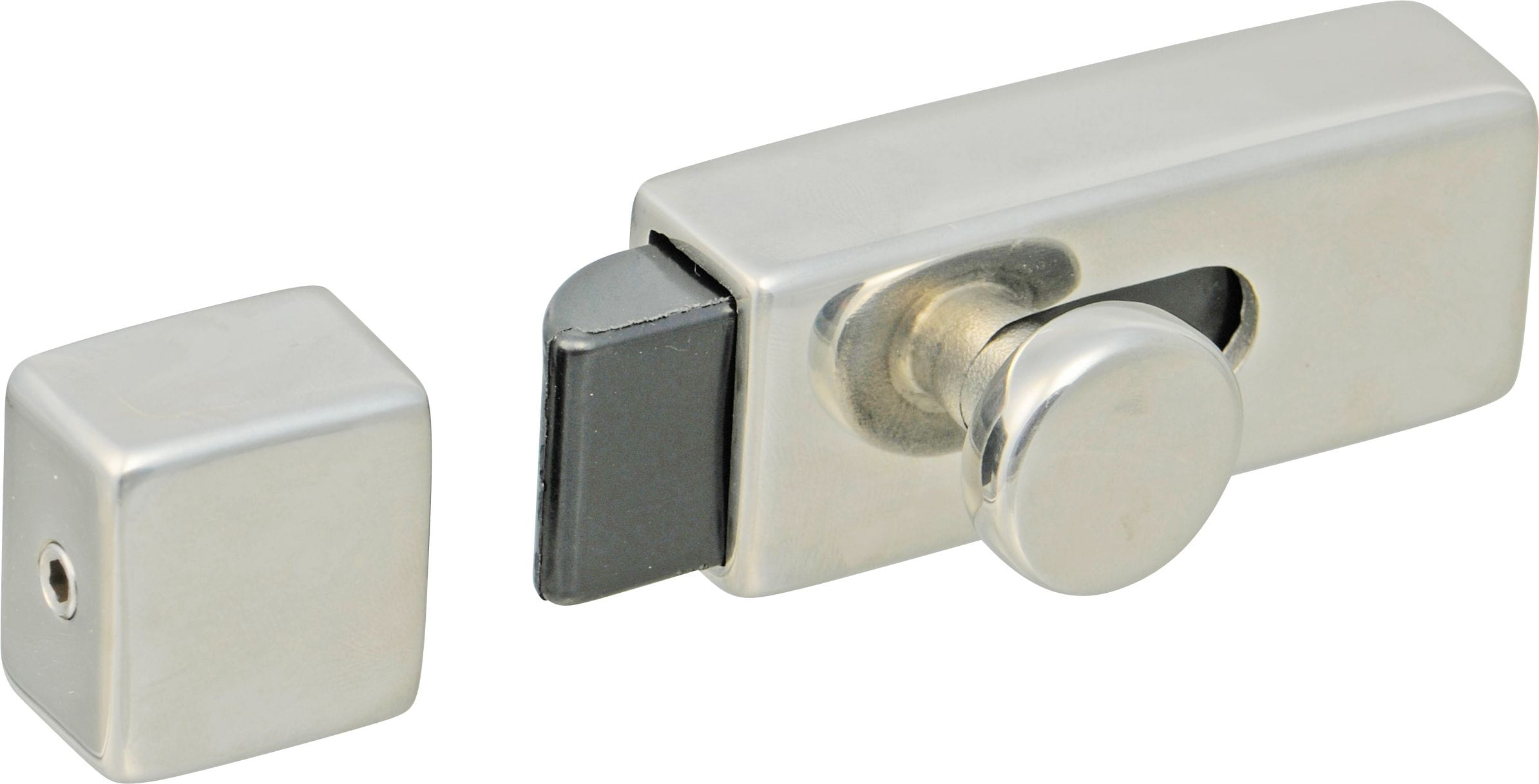 Schwerer, sauber verarbeiteter Riegel mit Edelstahlgehäuse. Die Verriegelung aus Nylon ist federgelagert, so dass ein Klappern augeschlossen ist. Der Grendelriegel wird mit verdeckten Schrauben von oben montiert.