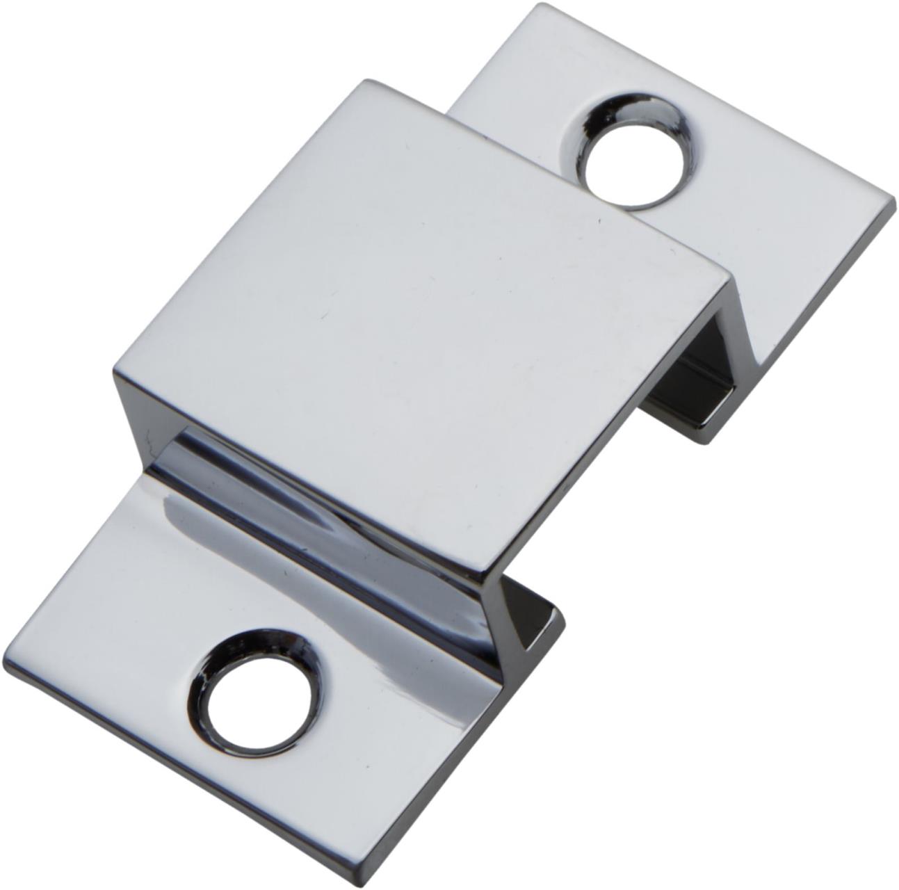 Schlaufe oder Schließblech passend zu geradem Profilriegel. Oberfläche aus verchromtem Messing.