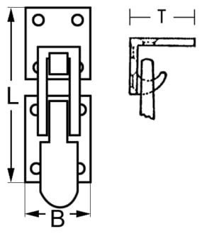 Formschöner, schlichter Spannverschluss, aus Messing mit polierter oder verchromter Oberfläche.