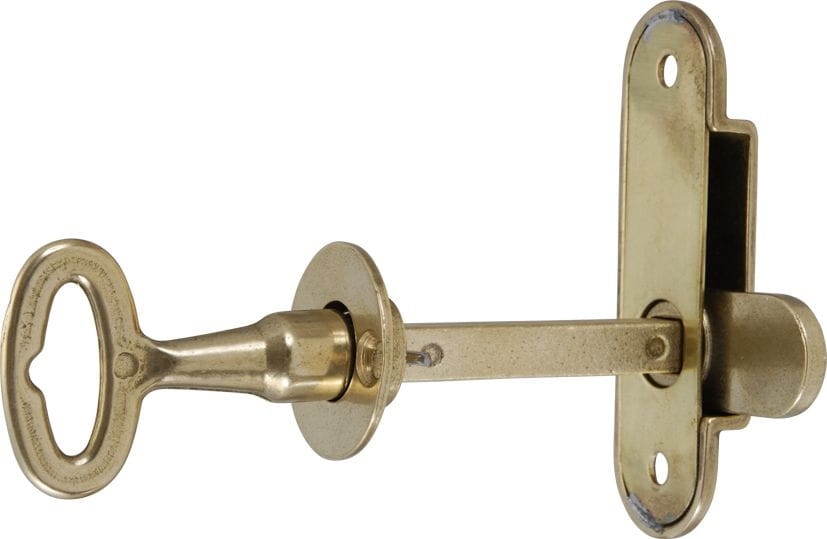 Dreiteiliger Beschlag aus Messing, der auch für größere Türstärken (bis 60 mm) geeignet ist. Der Vierkant-Schließstab wird beim Einbau entsprechend der Türstärke gekürzt.