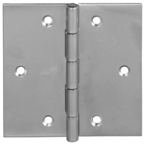 Breites Scharnier aus gerolltem A2-Edelstahl, Werkstoff 1.4301, mit vernietetem Edelstahlstift.