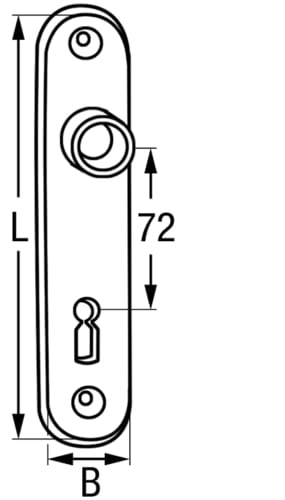 Messing Ovalschild, poliert oder verchromt, für gängige Haushalts-Einsteckschlösser mit Profilzylinder und Abstand A = 72 mm.