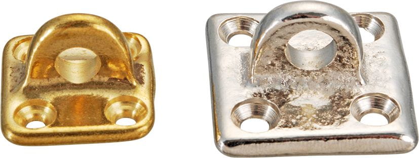 Aus Messing, Oberfläche matt gerollt oder vernickelt.