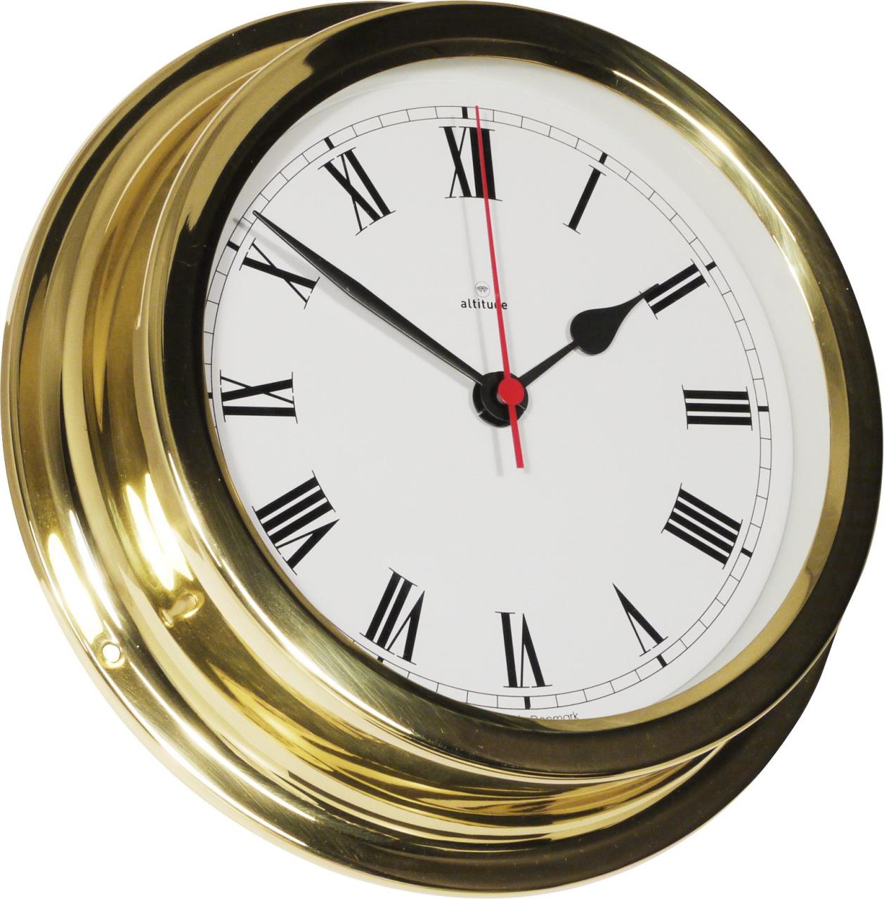 Die Quarzuhr mit römischem Zifferblatt hat einen großen, roten Sekundenzeiger, die Zeiteinstellung und der Batteriewechsel erfolgen über die Rückseite, das Instrument wird dafür von der Wand genommen.