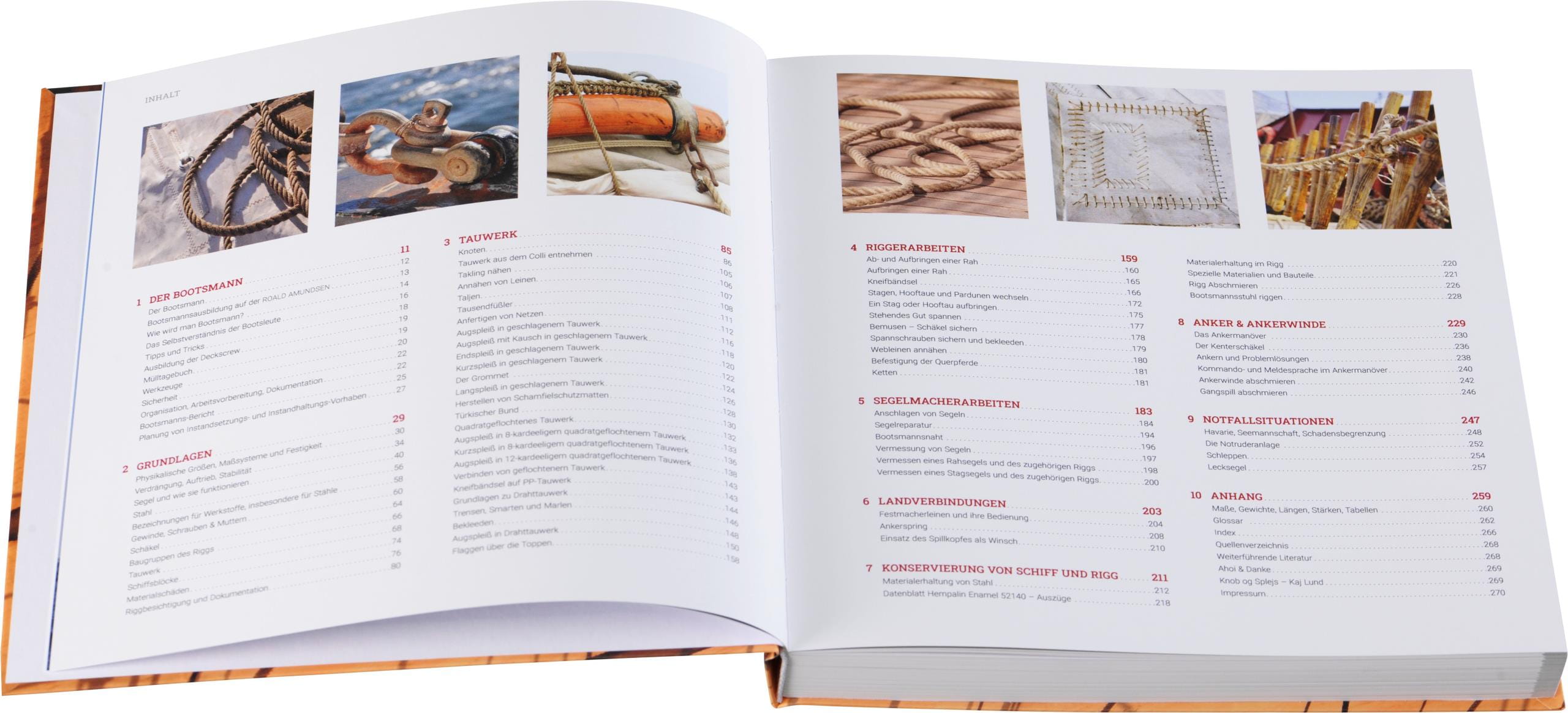 Neben tiefgehenden Grundlagen werden diverse Arbeiten Schritt für Schritt anhand entsprechender Fotos erklärt. Hier wird Traditionsseglern sehr anschaulich das Handwerkszeug zur Verfügung gestellt, um diese wunderschönen, alten Schiffe noch lange zu erhalten und zu segeln.