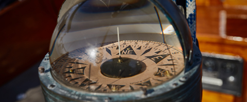 Auf Segelschiffen und Yachten wird als Steuerkompass meist ein Magnetkompass verwendet, der anhand des Erdmagnetfelds die Bestimmung der magnetischen Nordrichtung und daraus aller anderen Himmelsrichtungen erlaubt. Welches Kompassmodell am besten für ein Schiff geeignet ist, hängt von der Einbausituation ab. In jedem Fall sollte im Vordergrund stehen, dass der Kompass vom Steuermann gut abgelesen werden kann. Der Kugelkompass mit Flüssigkeitsfüllung ist im Yachtsport sehr verbreitet. Er kann sich Dank seiner Konstruktion ...