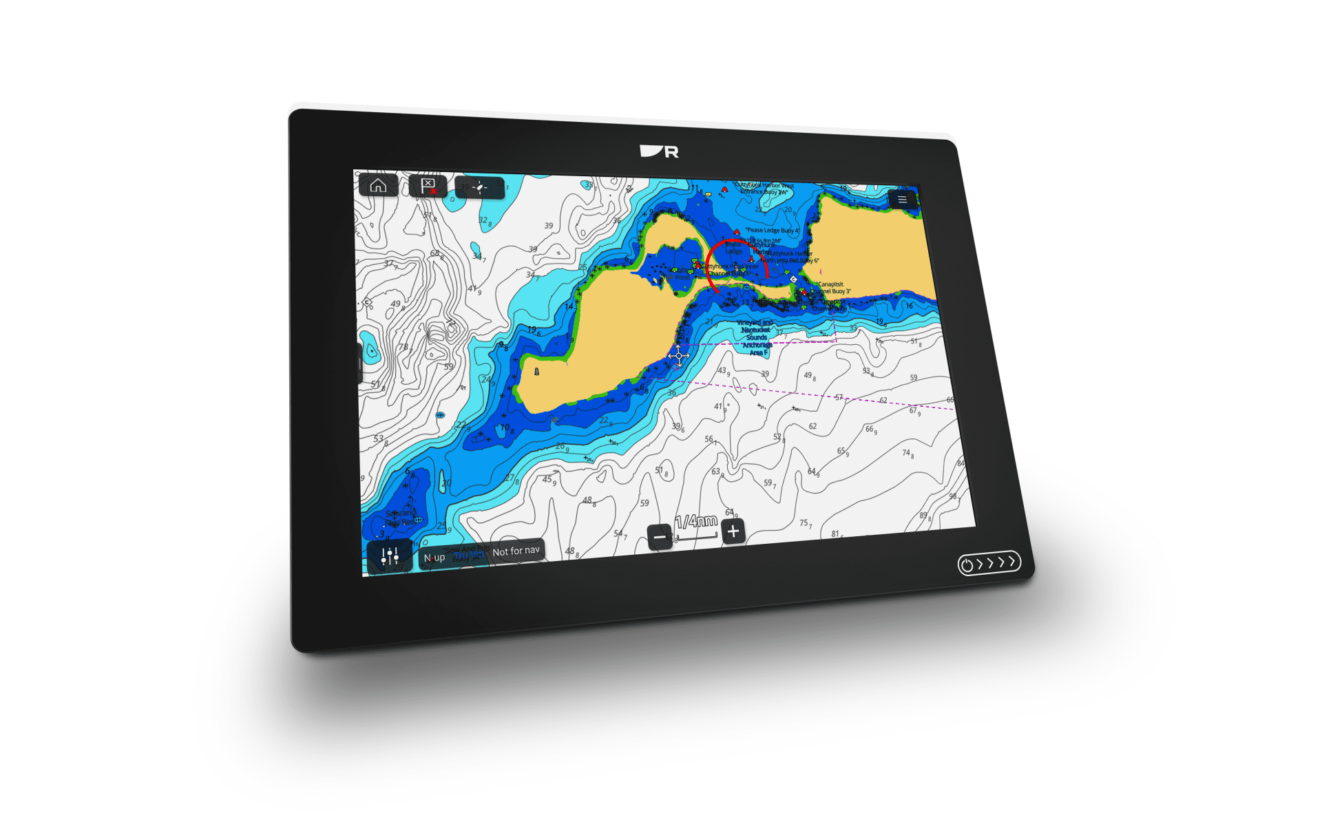 Der AXIOM+ läuft mit dem Betriebssystem Lighthouse 4 und kann wahlweise die eigens von Raymarine entwickelten Lighthouse-Kartensätze oder Navionics Karten darstellen. Zum Software-Umfang gehört auch Autorouting, das spielend einfach Routenvorschläge für ein gewähltes Ziel erstellt. Für Segler sehr interessant ist auch die Laylines-Funktion, die es erlaubt den richtigen Zeitpunkt für Wenden oder Halsen an der Kreuz in Richtung Ziel zu bestimmen. Dafür können im Plotter die Polar-Daten des eigenen Schiffes hinterlegt werden., viele Yachtmodelle sind bereits vorinstalliert. So können die Manöver ideal geplant und an Wind-Dreher angepasst werden.