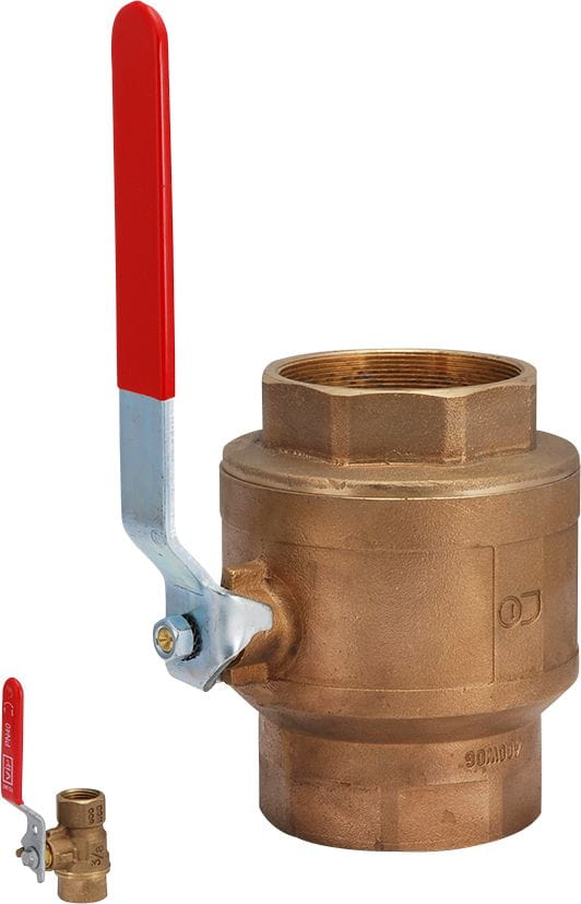 Marken-Kugelhahn aus der seewasserbeständigen Bronzelegierung CB491K CuSn5Zn5Pb5-B mit vollem Durchgang.