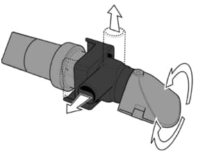 Sieb abnehmbar, Schlauchabgang waagerecht oder senkrecht.