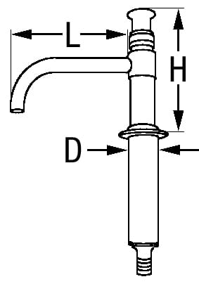 Aus schwerem Messing, Oberfläche Messing poliert oder verchromt. Sehr robuste und leistungsstarke Ausführung mit Kugel-Rückschlagventil. Übertischmodell mit schwenkbarem gebogenen Auslauf und vertikalem Pumpkolben.