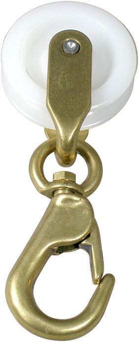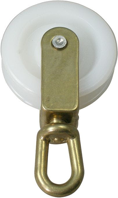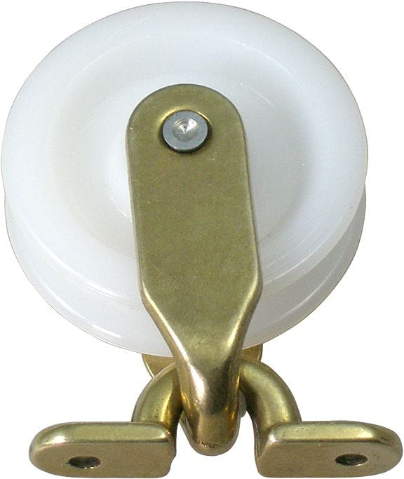 Steuerseilrollen: Scheibe aus weissem Polyamid, Beschläge aus Messing.