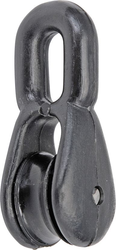 Alle Teile sind rostfrei. Blockgehäuse und Scheibe aus schwarzem Nylon, Edelstahl-Achse.