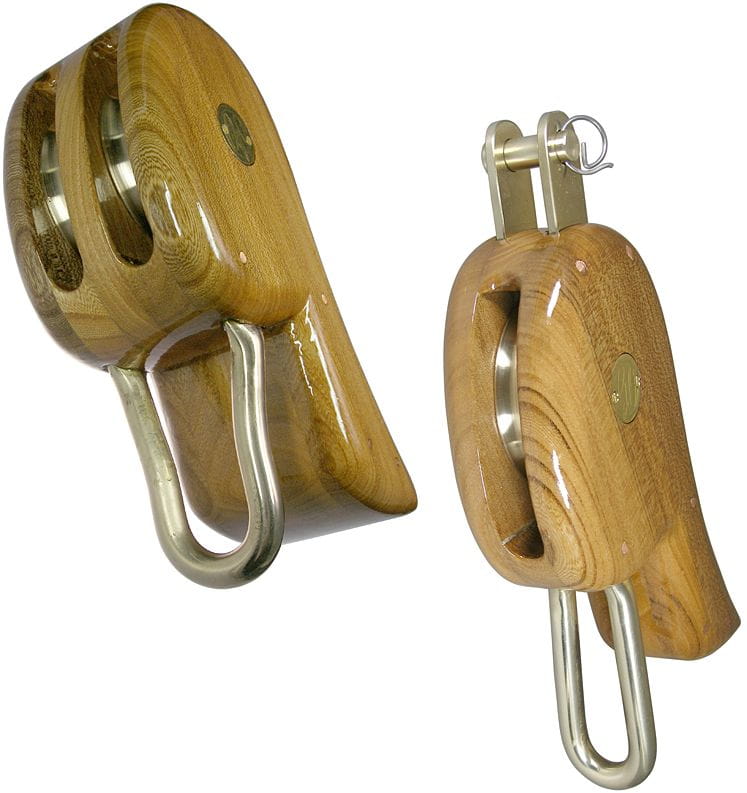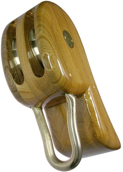 Yachtblock aus besonders beständigem Ulmenholz mit Beschlägen aus hochfester und absolut seewasserfester Aluminiumbronze.
