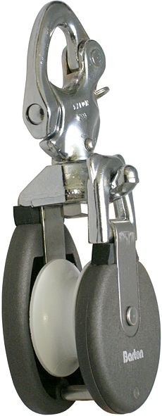 Kleiner Snatchblock in klassischer Form. Eine robuste Konstruktion mit einfacher Öffnungs-/ Schließfunktion.