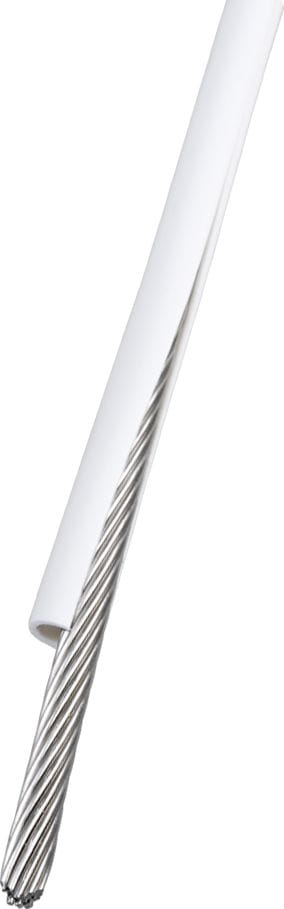 Weißer, geschlitzter PVC-Schlauch, Länge 1,80 m. Der Wantenschoner ist leicht zu montieren, einfach über den Draht drücken, der Schlauch schnappt sofort ein. Auch für Relingdraht geeignet.