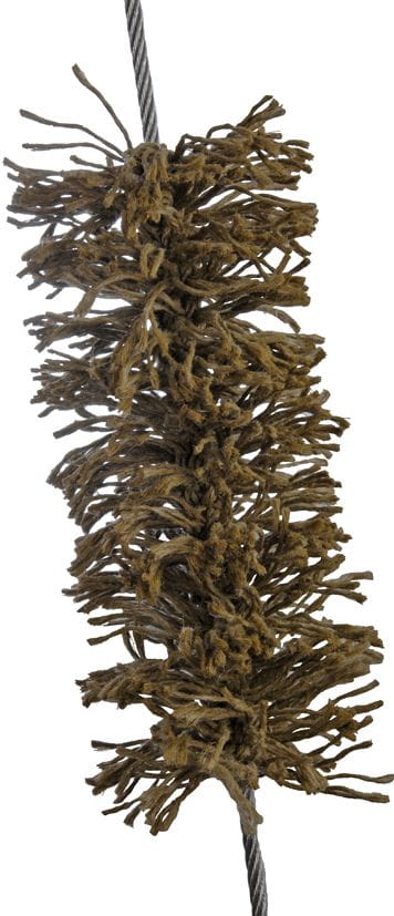 Auf doppelt liegendes Hüsing (Polypropylen PP geteert) werden Tauwerksgarne aus dem gleichen Material im Tausendfüsslerplatting von Hand aufgeknüpft.