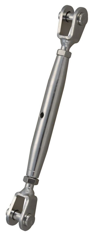 Hochglanz polierte Wantenspanner mit geschlossener Hülse aus Edelstahl 1.4401 (AISI316) vom dänischen Markenhersteller BLUE WAVE.