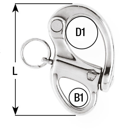 Hochwertige, geschmiedete Schnappschäkel mit festem Auge, für Fallen, Schoten und andere Anwendungen. Hergestellt aus HR -Edelstahl (high resistant), hohe Bruchlasten, leicht zu öffnen. Werkstoff 1.4542 (17.4PH/ AISI 630).